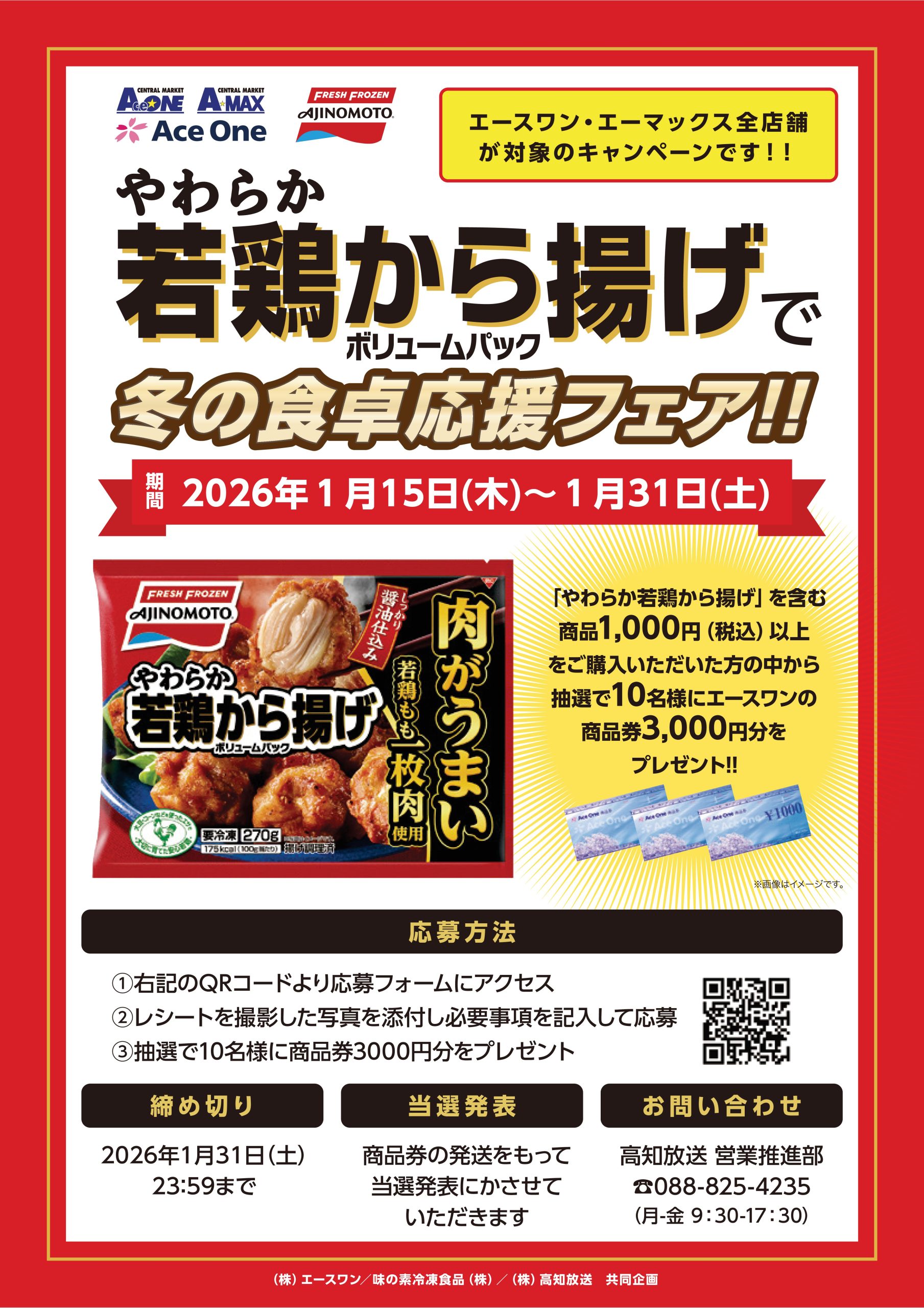 エースワン×味の素 やわらか若鶏から揚げで冬の食卓応援フェア